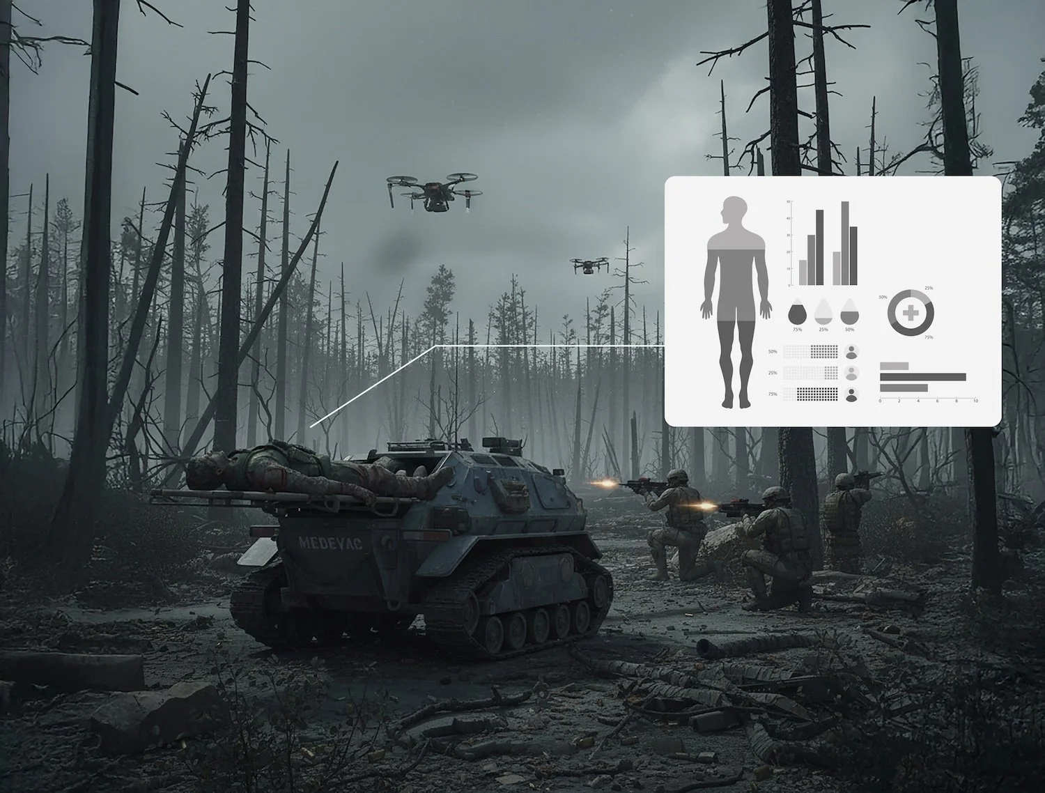Robotics, Autonomy, and Remote CareRobotic and autonomous systems are already reshaping aspects of defence medicine, particularly in logistics and surgical support. Technologies originally developed for military robotics are now being adapted for medical applications, including robotic surgery, tele-operated procedures, and autonomous casualty evacuation platforms (1).